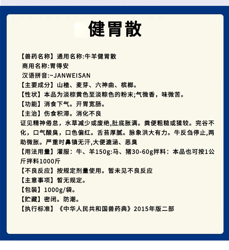 【用法用量】馬、牛150~250g;羊、豬30~60g。