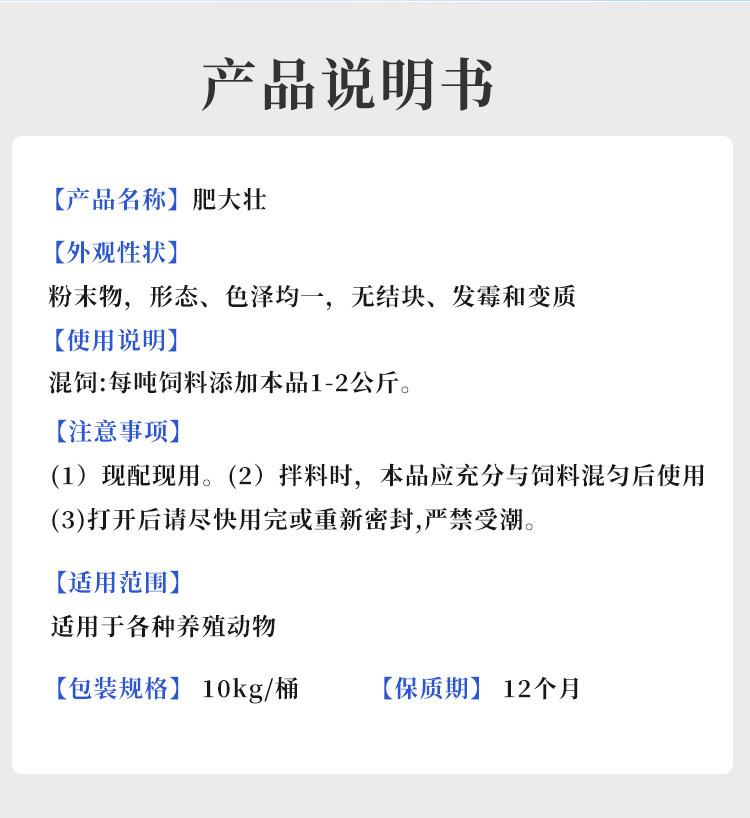 產(chǎn)品簡介:普旺肥大壯開疆促長膘肥體壯豬飼料添加劑。催肥抗病促生長,降低養(yǎng)豬成本,提前出欄。