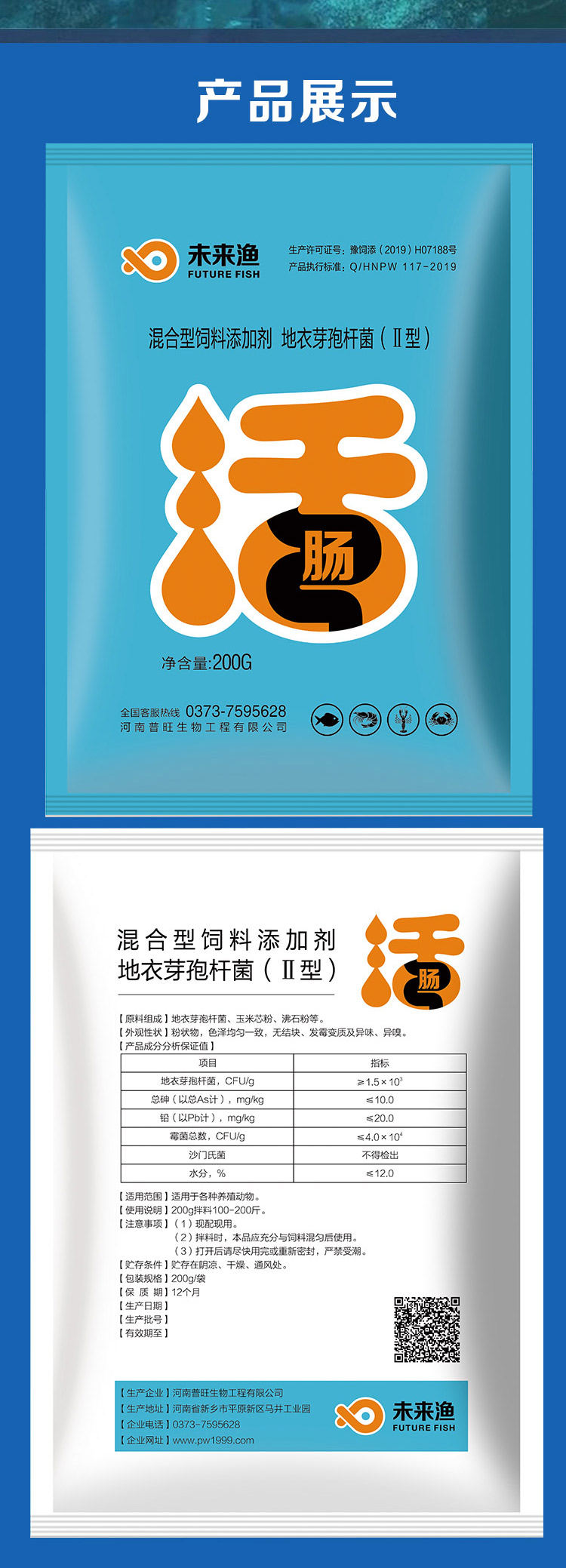 產品簡介:普旺生物未來漁活腸 調節腸道誘食增料預防腸炎猛吃猛長 水產用藥廠家 腸炎白便 修復腸道 空腸空胃 免疫促長 混合型飼料添加劑 地衣芽孢桿菌