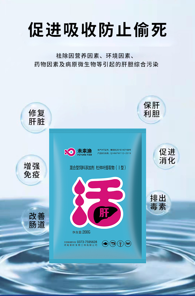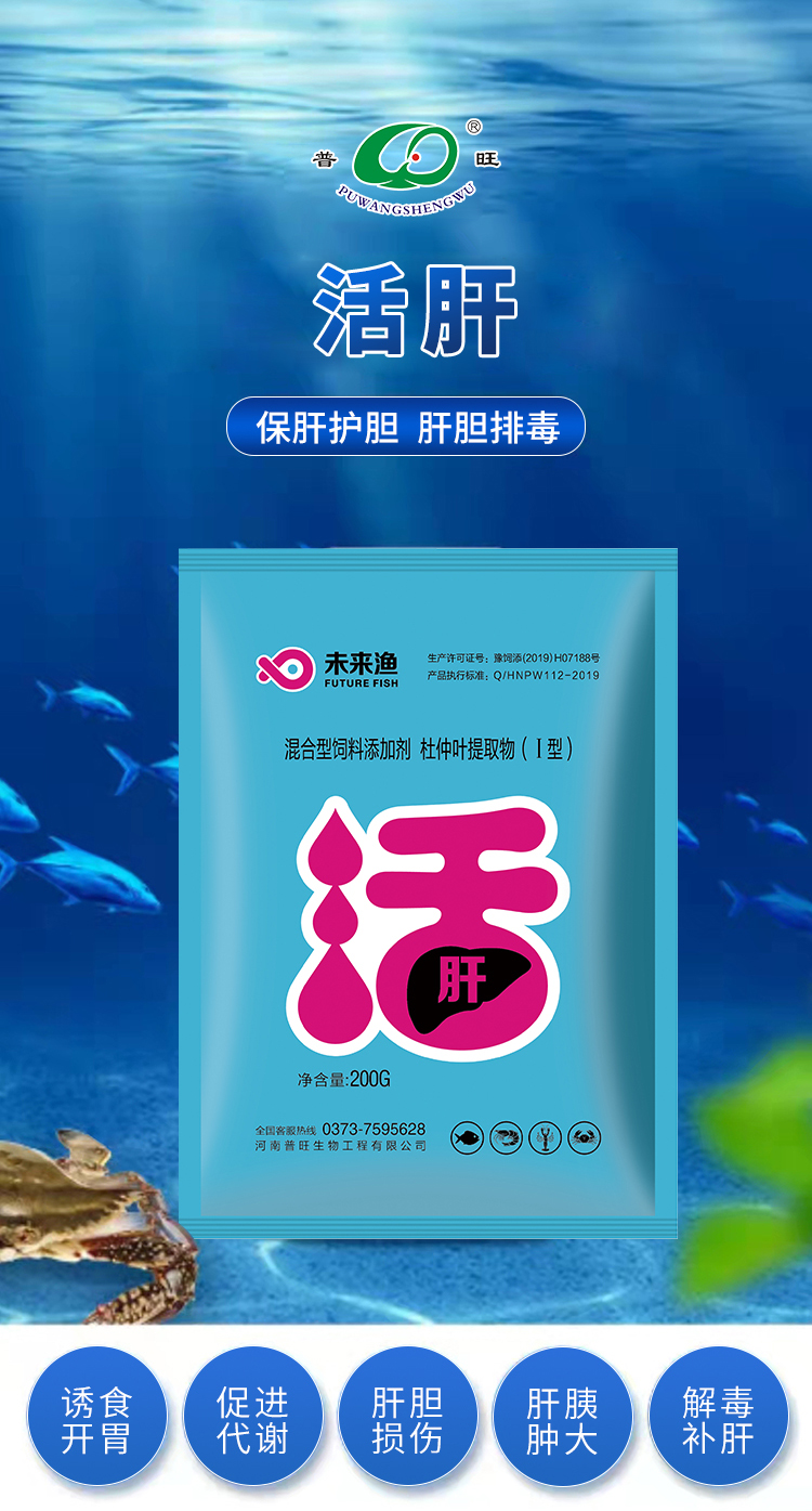 產品簡介:普旺水產藥廠家 未來漁活肝保肝護肝排毒誘食開胃促進代謝飼料添加劑 誘食開胃 促進代謝 肝膽損傷 胰腺腫大 解毒補肝 適用于魚、蝦、蟹等各種養殖動物 200g/袋