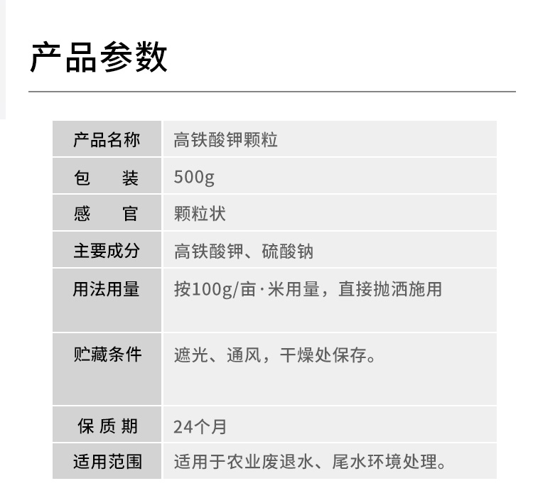 產(chǎn)品簡介:未來漁高鐵酸鉀顆粒