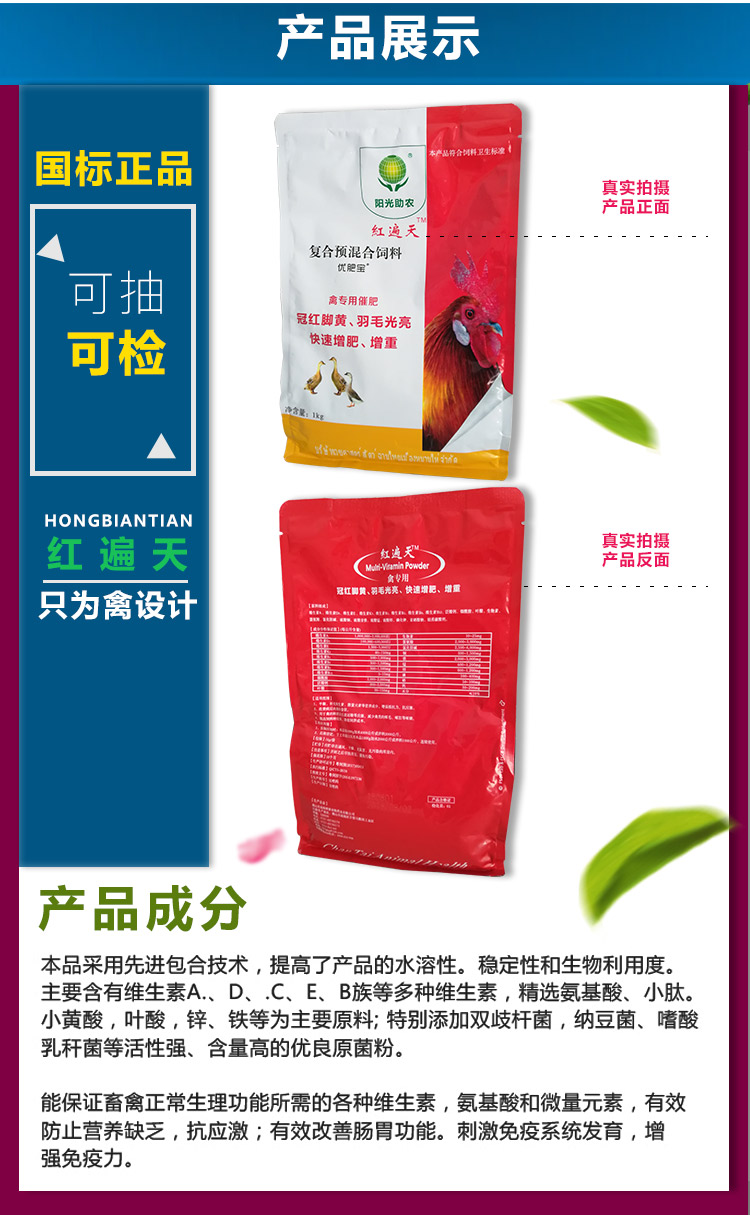 1.有效預防和治療維生素缺乏癥,迅速補充營養,促生長,快速增肥增重,增強抵抗力、抗應激。