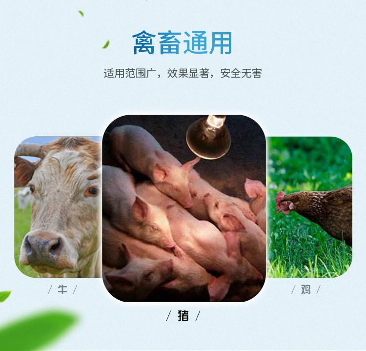 拌料:本品500g兌水1000斤,供畜禽自由飲用。